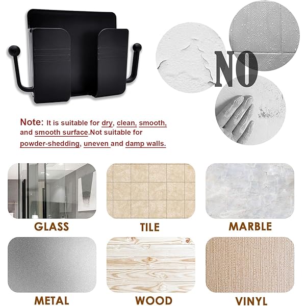 The wall phone holder is made of high-quality plastic, durable and strong adhesive, not easy to fall off. There are hanging racks on both sides, which can hang data cables, hair ropes, keys, accessories, etc.